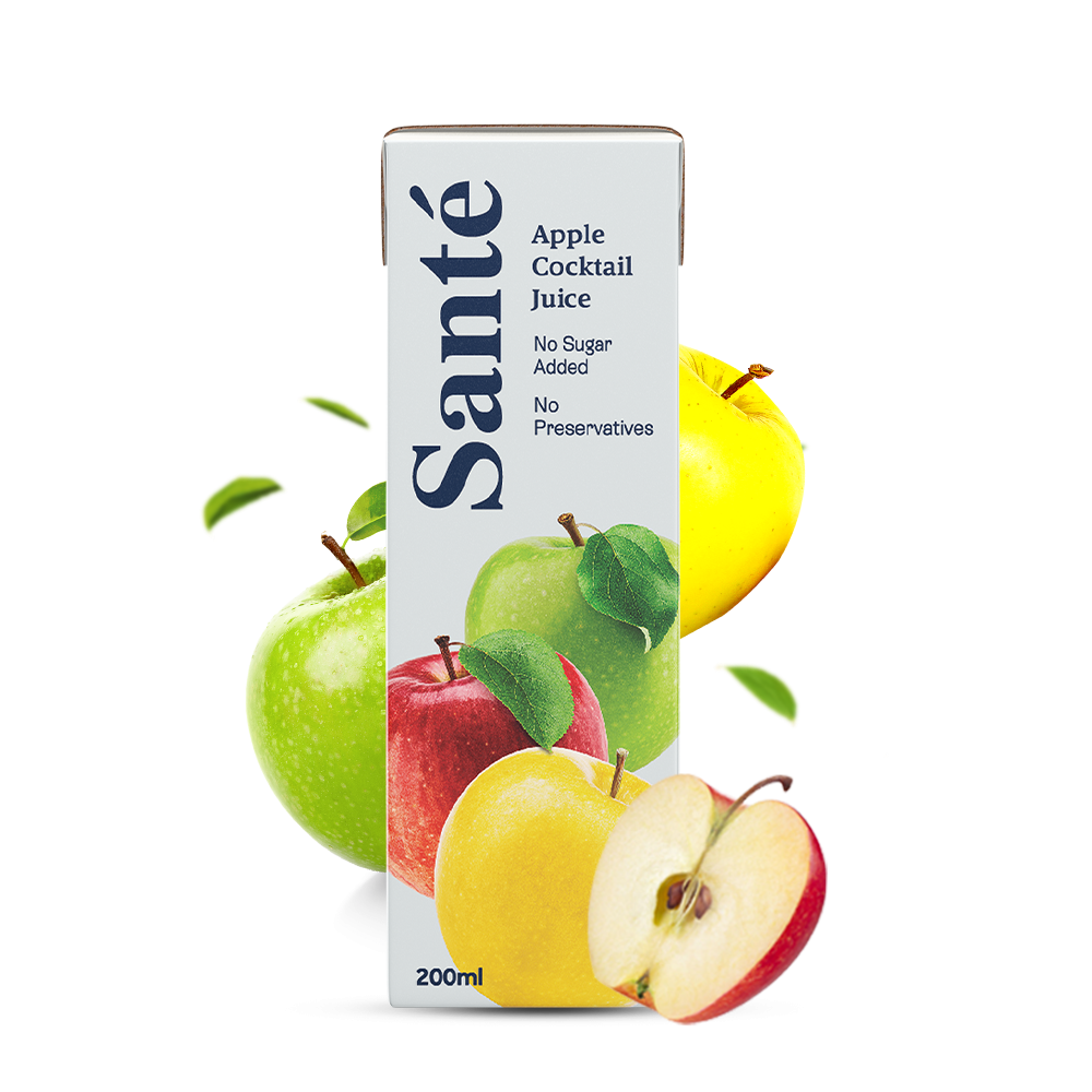 عصير سانتي تفاح كوكتيل يجمع بين التفاح الاخضر و الاصفر و الاحمر الثمار مختارة بعنايه لانتعاش لا يُقاوم. تركيبة طبيعية 100% بدون سكر مضاف أو مواد حافظة، مثالية لكل لحظة.
